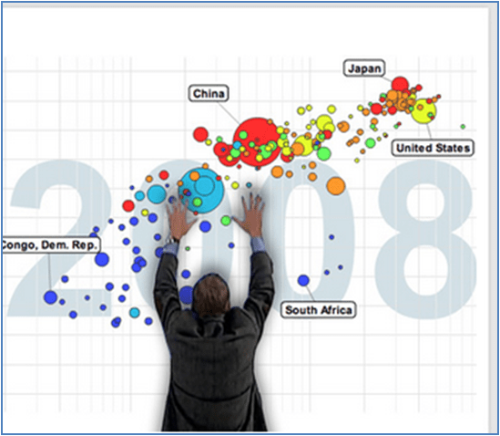 Explora el mundo. Gapminder Mundial muestra de forma dinámica utilizando gráficos de realidad aumentada las tendencias más importantes de los países del mundo sobre la riqueza y la salud de las Naciones o las emisiones de CO2 desde 1820.