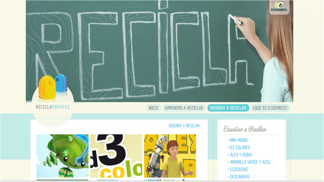 En su nueva página web Ecoembes incluye distintas secciones Mini-mundi, , el tamagotchi on-line o D3 colores y pensando en el profesorado un blog Amarillo, verde y azul y una zona de materiales para descargar, en la que encontrarás una gran variedad de propuestas enfocadas a que los recicladores del futuro comiencen a cambiar el presente.