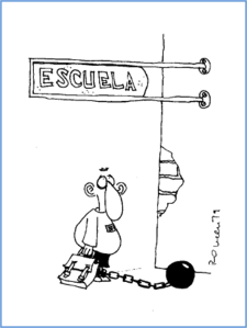 Ah! la educación formal… convierte a los maestros en funcionarios, a los profesores progresistas en «conservadores» defensores del sistema, a los jóvenes en «imbéciles» y a los padres en «histéricos». Un sistema atado y bien atado que dijo uno. Pues yo grito ¡Un niño/a, una forma de aprender! ¡un/a profe, una forma de enseñar! ¡unos padres, una forma de educar! Hay millones de maneras de hacerlo y nos imponen una sólo, exportada de donde no funcionó, y para convertirnos en ovejas. ¡Y encima nos hacen complices! «De cada niño, profe i padres según su capacidad; a cada cual según sus necesidades» ¡Feliz Navidad!