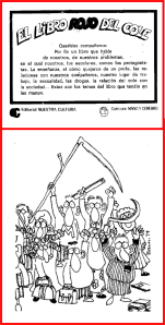 El Libro Rojo del Cole en aquellos años, quizás en estos también, era profundamente subversivo, tanto por ir destinado a los escolares como por poner en cuestión el poder de los mayores, además de hablar abiertamente de sexualidad y de drogas sin el tono alarmante y paternalista que tenían las campañas publicitarias.